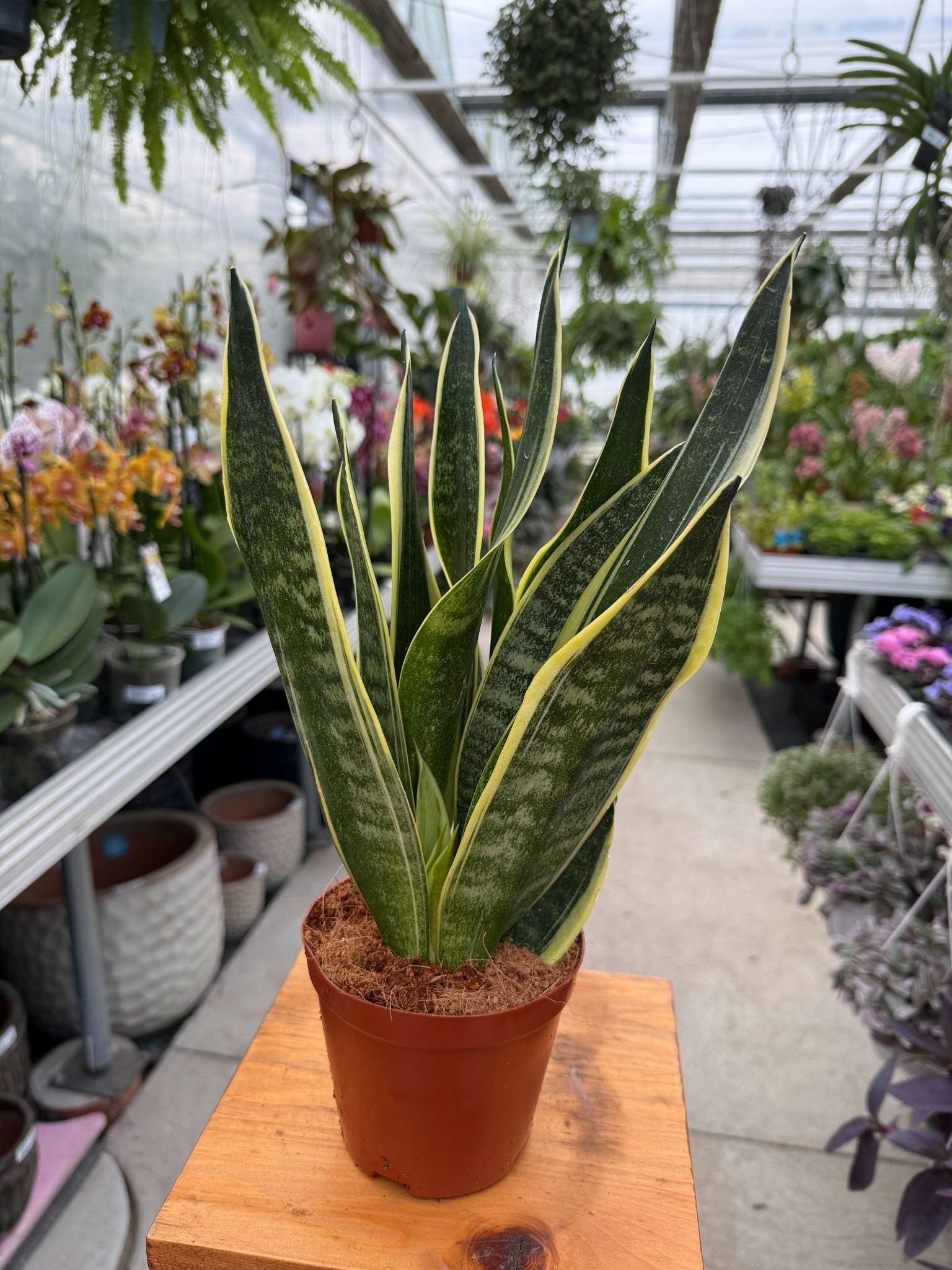 Sansevieria Canary o sztywnych, pionowych liściach z jasnym obrzeżeniem. Wytrzymała roślina do mieszkań i biur, toleruje słabsze światło.