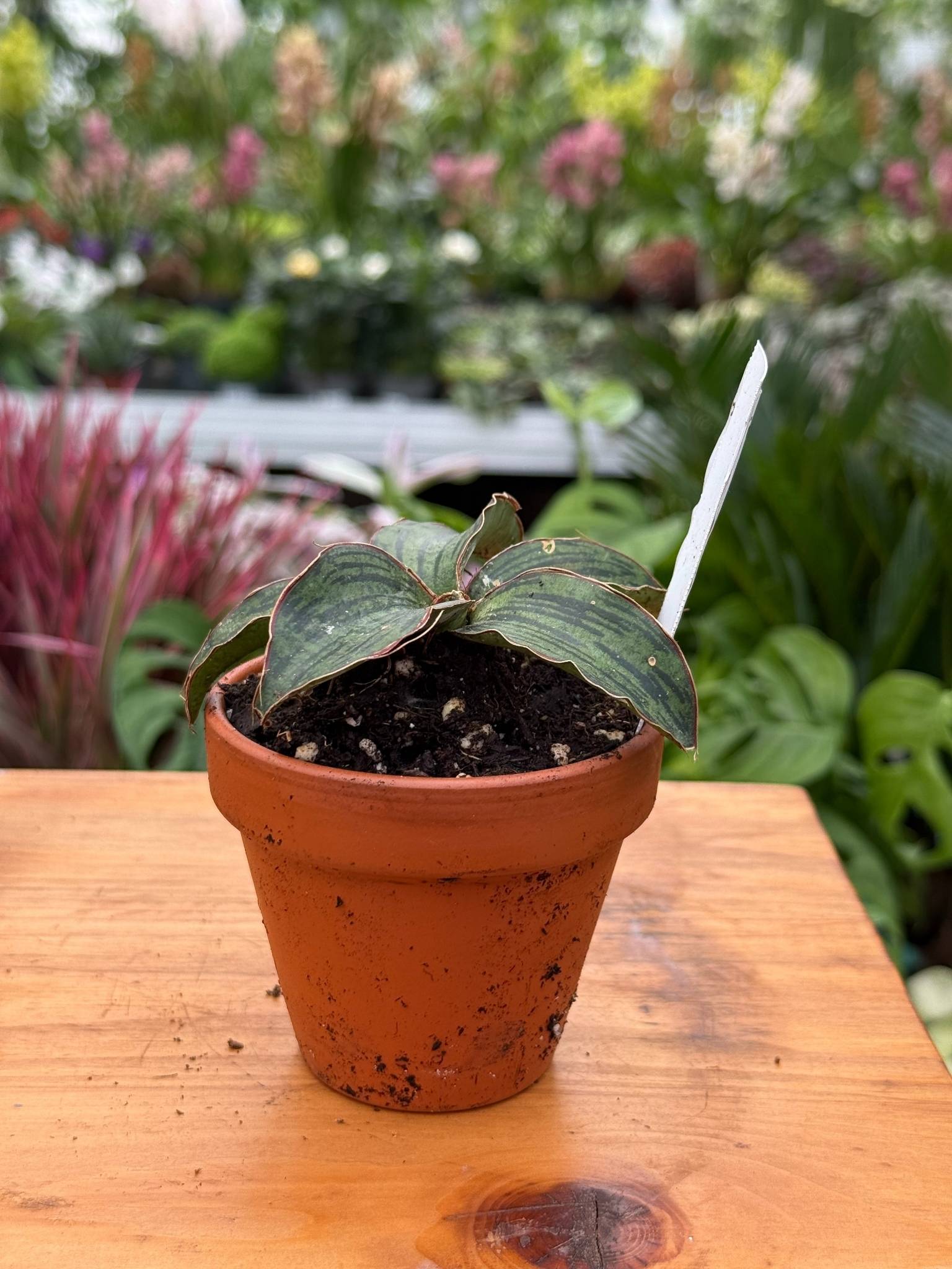 Sansevieria Cleopatra to odmiana o sztywnych, pionowo ustawionych liściach, ciemnozielonych z delikatnym, jasnym obrzeżem. Jej zwarty, kompaktowy pokrój sprawia, że dobrze prezentuje się na parapecie, komodzie czy biurku, wprowadzając wyraźny, zielony akcent do wnętrza.