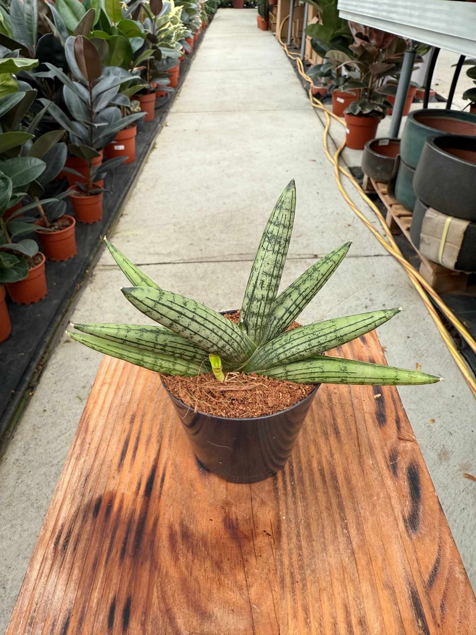 Sansevieria ‘Helios’ to wyjątkowa odmiana sansewierii o grubych, cylindrycznych liściach ułożonych w zwartą, efektowną rozetę. Jej rzeźbiarski kształt i intensywnie zielony kolor sprawiają, że doskonale pasuje do nowoczesnych, minimalistycznych oraz industrialnych wnętrz.
