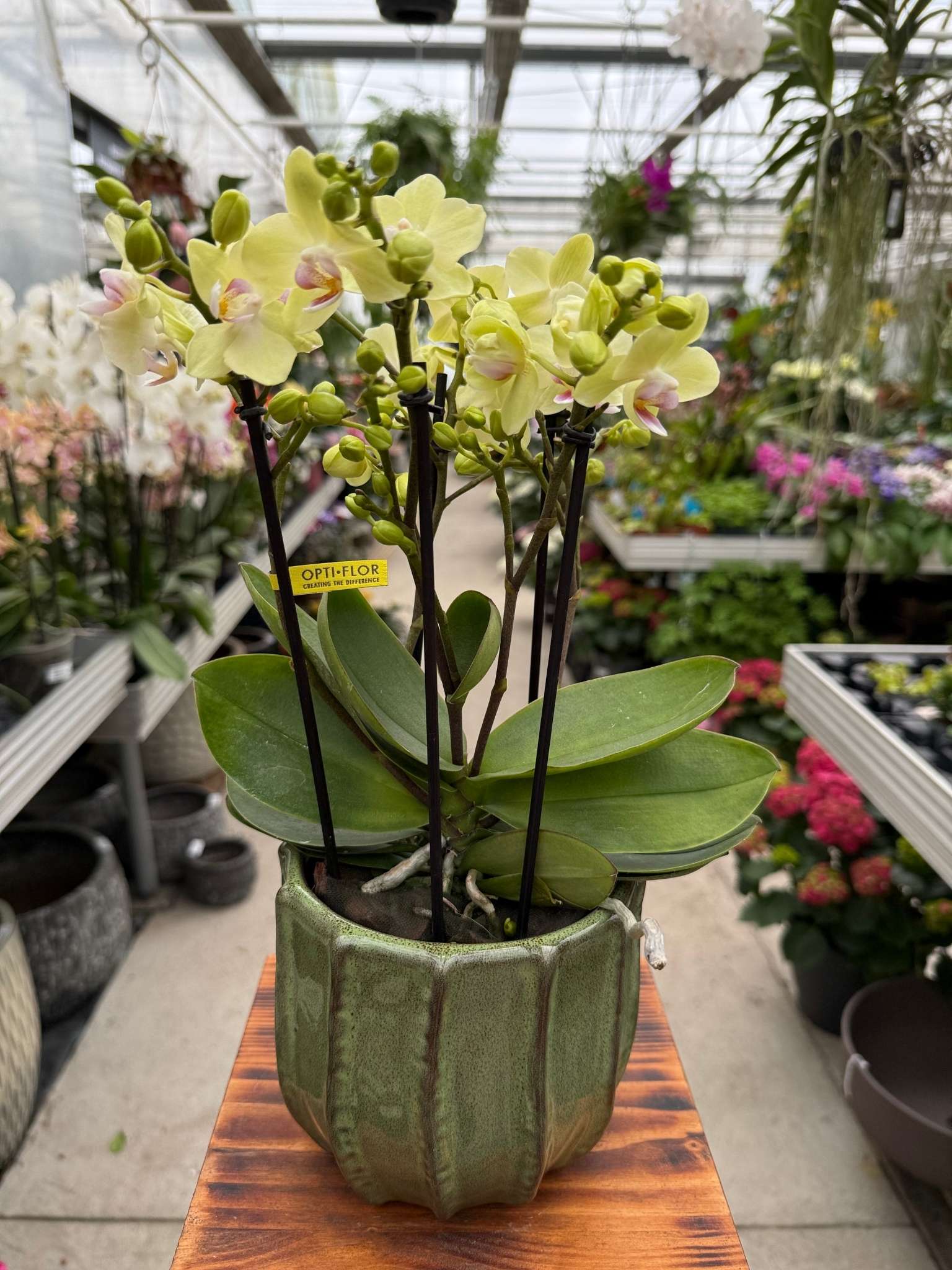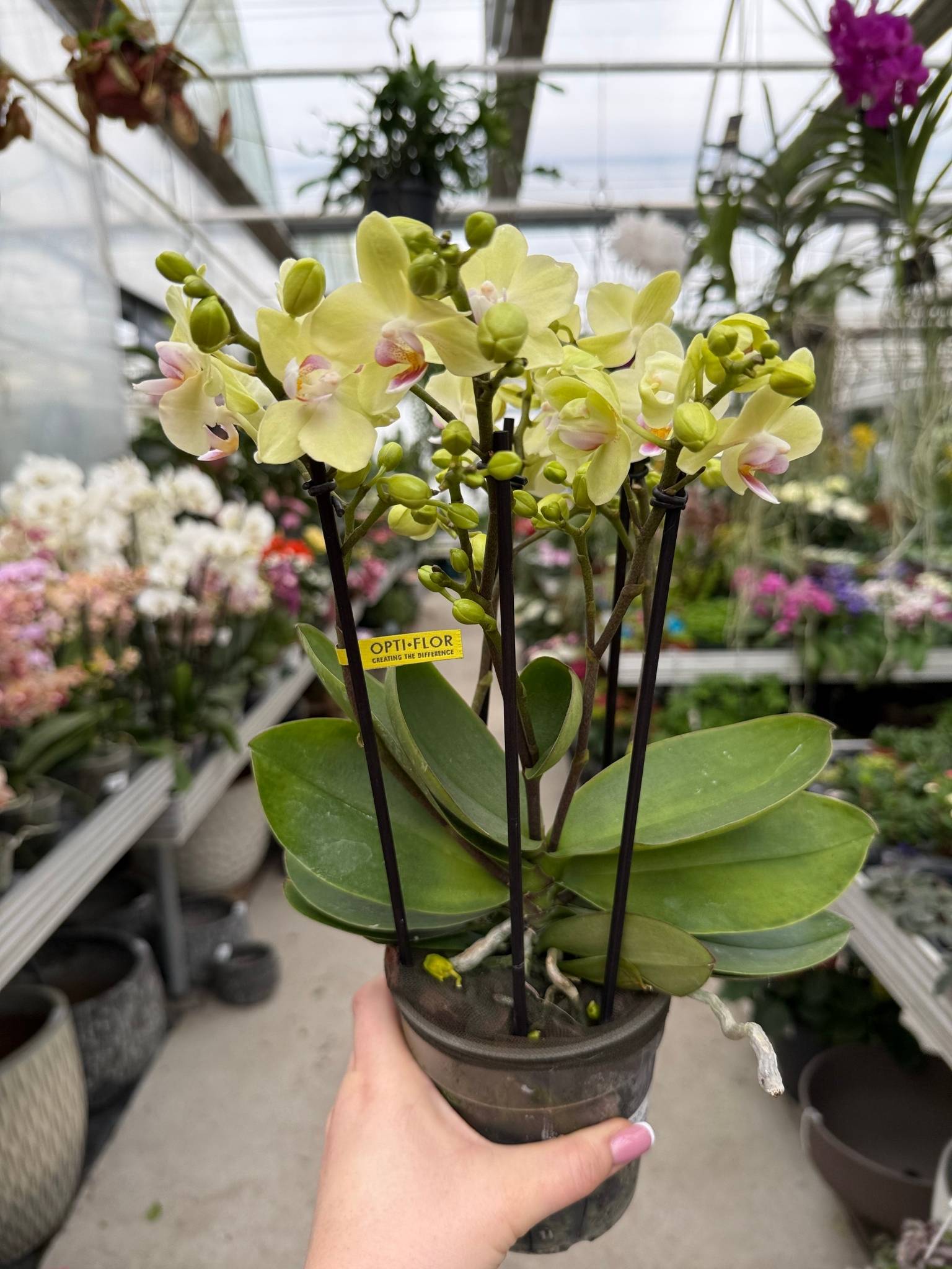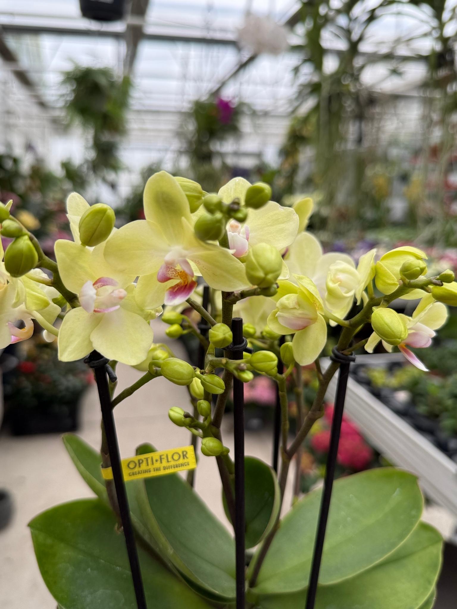 Storczyk Phalaenopsis Yellow Sensation to energetyczna i radosna odmiana storczyka falenopsis, sprzedawana w dużej, 12-centymetrowej przezroczystej doniczce. Odmiana „Yellow Sensation” charakteryzuje się dużymi, czysto żółtymi kwiatami o jednolitej, intensywnej barwie, która przypomina kolor słonecznika lub świeżego cytrynu. Często posiada kontrastującą, białą lub jasnożółtą warżkę z delikatnym czerwonym lub pomarańczowym wzorem.