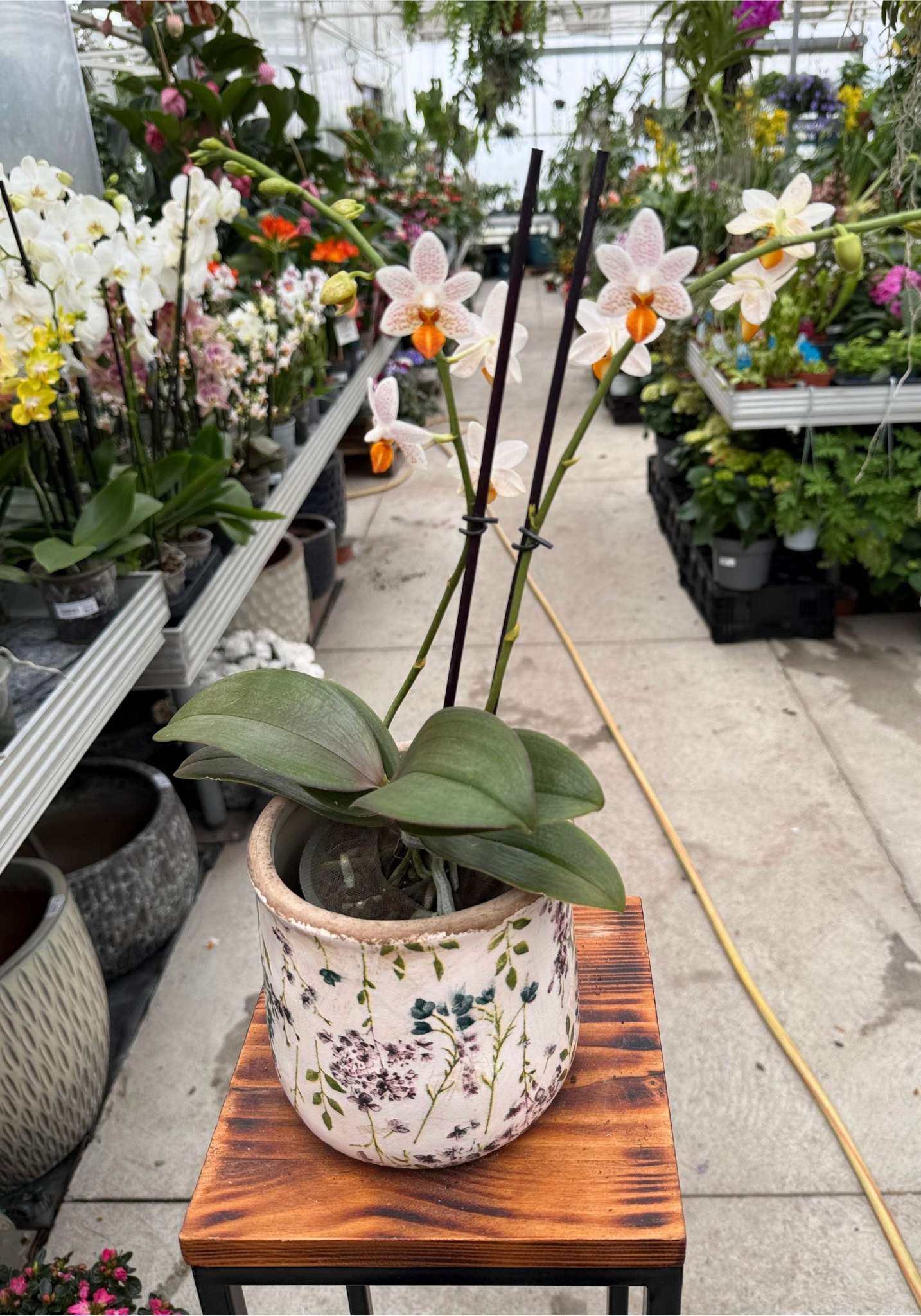 STORCZYK PHALENOPSIS LIMITED 18 to wyjątkowa odmiana o subtelnych, jasnych kwiatach z delikatnym rysunkiem i kontrastowym, pomarańczowym środkiem. Roślina przyciąga uwagę formą kwiatów i lekkością całej kompozycji. Dobrze odnajduje się w mieszkaniach, gdzie stanowi spokojny, naturalny akcent.